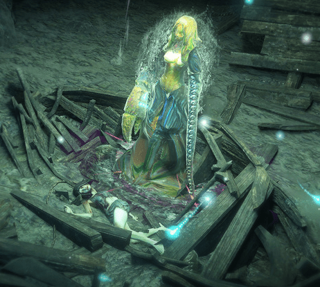 Follow the road until the end where you’ll see Piety that has closed the road off. Then, hug any wall side (left/right/up/down) and follow it until you reach the next area “The Ship Graveyard”.