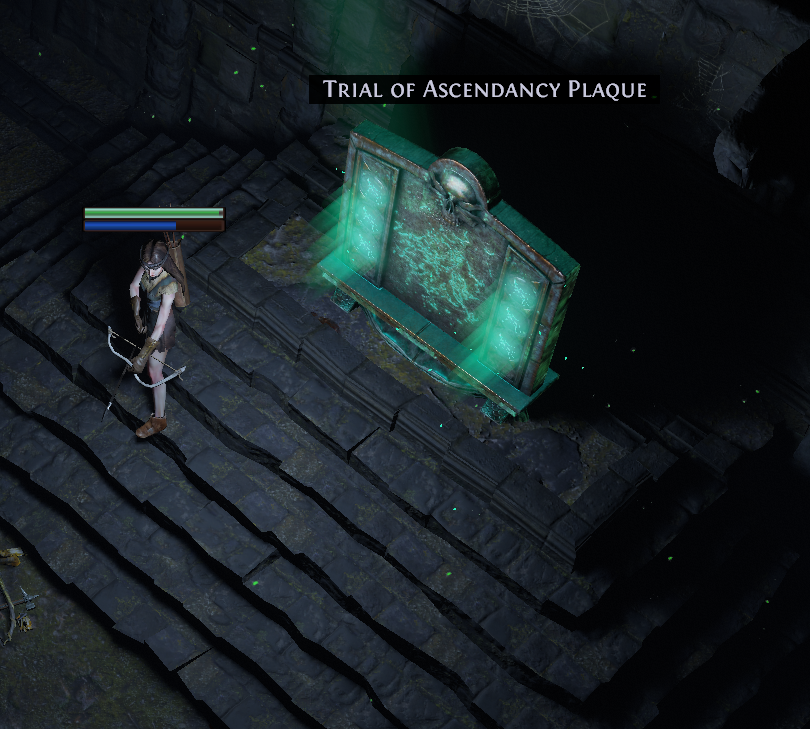 First, go north after the waypoint at the start of the zone. If you find the next zone, go the other way, however if you find A book icon and a door next to it, it will say “Trial of Ascendancy”. Open the door and proceed through the gauntlet until you see a “Trial of Ascendancy Plaque”. Click it, then a mini-portal will appear, click that and it will teleport you to the door of this Trial. This is a first of many trials that need to be completed in the campaign (They are all listed via image and Legend at the top of the page).