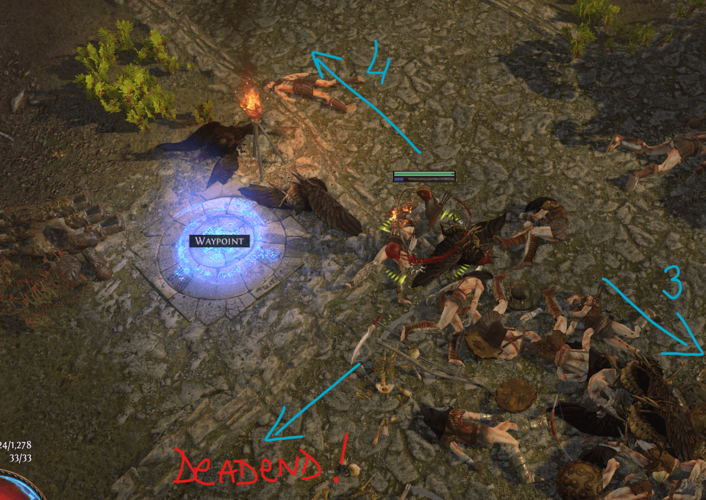 10) Vaal City is a zone YOU WILL GET LOST IN. The best way to do the zone is to head north from entrance until you hit a wall. Then head left until the end of the wall then continue North. Repeat the process until you find a VERY LONG WALL and the waypoint/next zone is on the other side of that wall. If you find a book on the map, usually the way to go is a bit South and East from the book. Good luck with this zone. Once you’re at the waypoint, talk to Yeena, she will take the fireflies and open the way to The Temple of Decay Level 1.