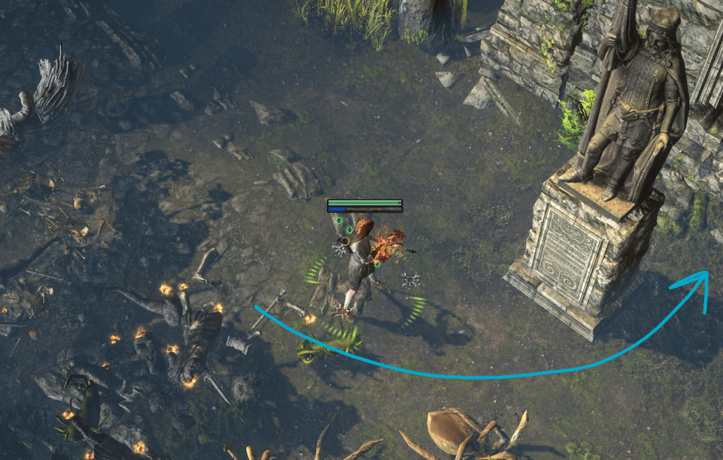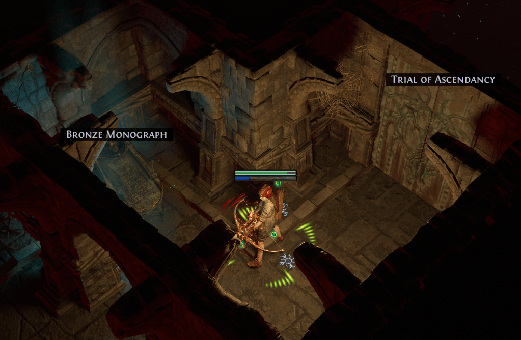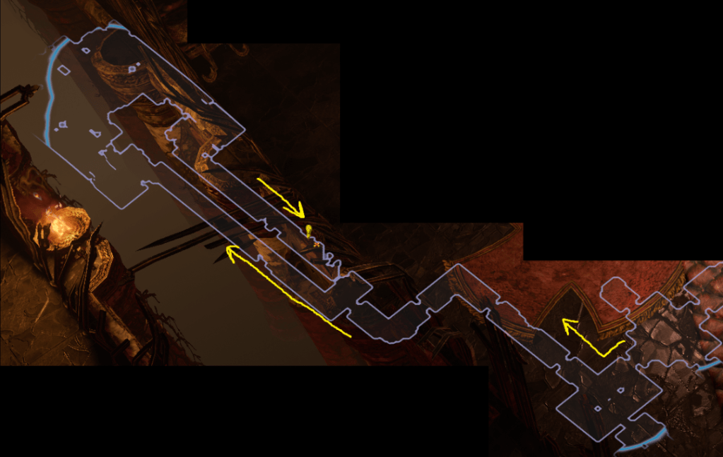 11) From Temple of Decay level 1 until the Last boss of Act 7 (Arakaali), the path is similar to Act 2 as descend the tower to the bottom. Follow along until stairs, repeat, repeat. Flame dash helps greatly here to skip some broken bridges (Image).