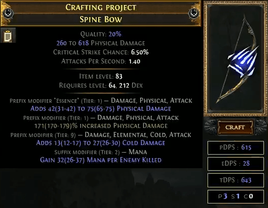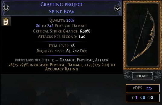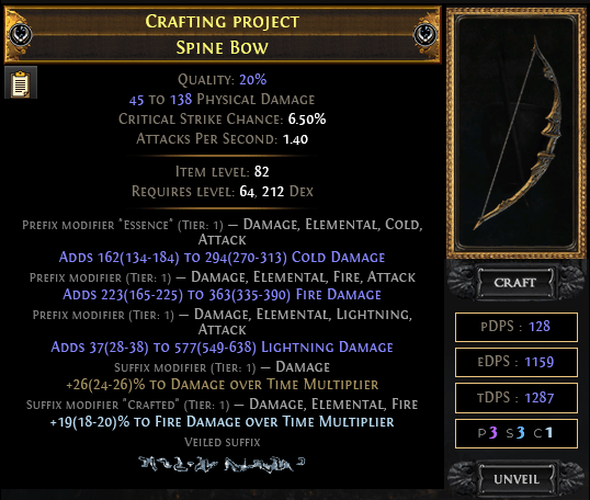 1. Any bow base (ilvl 82+) that you’d like fractured with damage over time multiplier fracture.